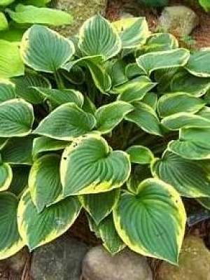 Хоста Aureomarginata (Ауреомаргината). Представляет собой быстрорастущее растение, которое образует красивые и пышные куртины листьев, напоминающие кустарники. В высоту все растение может достигать примерно 40-50 см, в диаметре кустик может разрастаться также до 50 см в молодом возрасте и до 120-130 см в более взрослом возрасте. Листовая пластина имеет сильно рельефную поверхность и остроконечную форму. Этот сорт хосты может похвастаться эффектной расцветкой листвы. В молодом возрасте листья светло-зеленого оттенка с толстой неровной каймой бело-кремового оттенка. С возрастом эта кайма становится менее заметной и более зеленой.