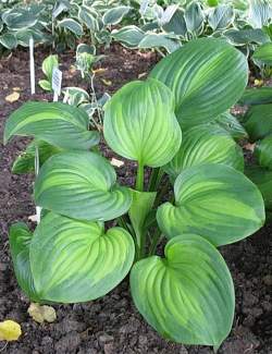Хоста Avocado (Авокадо). Большая хоста высотой 70 см и шириной 120 см. Спорт сорта "Guacamole". Листья красивые выпуклые, яблочно-зелёные с гораздо более широкой тёмно-зелёной каймой, чем у родительского сорта.