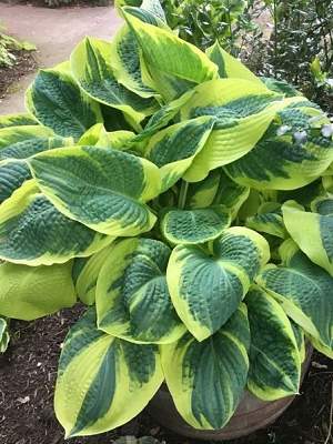 Хоста Banana Kid (Банана Кид) — сорт с уникальной яркой окраской листьев. Сочетание оттенков лайма и зеленого банана. Цвет остается свежим и ярким весь сезон. Листья сердцевидные, очень плотные, с глубокими рельефными прожилками. На однородном фоне пластины они очень хорошо заметны.