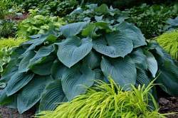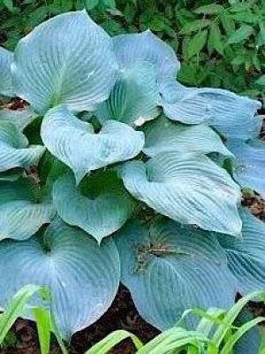Хоста Blue Angel (Блу Энджел). Легендарная гигантская хоста с изящными голубыми листьями. Цветки практически белые в стройных соцветиях. Предпочитает тенистое и полутенистое место посадки, где достигает максимальных размеров.