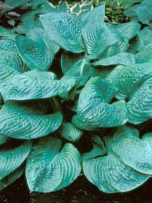 Хоста Blue Mouse Ears (Блу Маус Иэрс). Высота растения 15 см, диаметр куста во взрослом состоянии 30 см. Листья маленькие, толстые, округлые, сизо-зелёно-голубоватые. Могут достигать 20 см, а их стандартная ширина — до 10 см. Цветоносные стебли этого растения совершенно лишены растительности, их высота колеблется от 20-ти до 100 см.