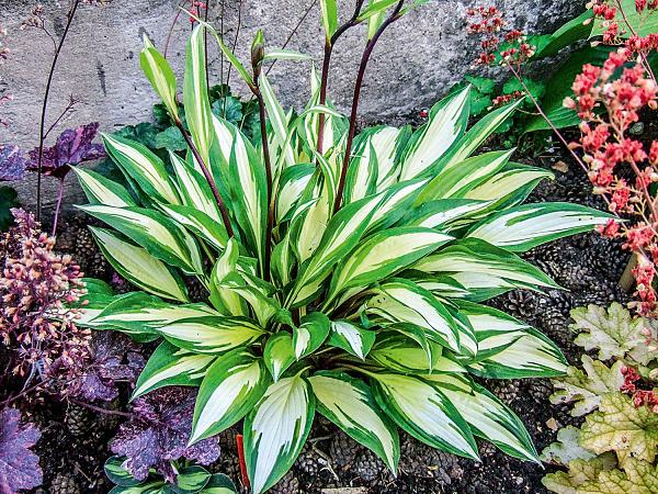 Обратите внимание, окраска и фактура листьев в полной мере проявляются у хост лишь на 2-й год после посадки. Сажать их следует с учетом размеров во взрослом состоянии. Иначе взрослые экземпляры, имеющие розетки до полутора метров в диаметре, со временем закроют многолетники, растущие рядом.