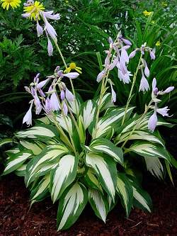 Обычно хосты высаживают с гейхерой, садовыми геранями, наперстянкой, астильбой, медуницей, аквилегией, осенней анемоной, папоротниками, астранцией и другими декоративными многолетниками.