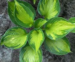 Хоста Colored Hulk (Калэд Халк). Хоста с необычной окраской листьев. Листья плотные, центр фисташково-зеленый, кайма темно-зеленая. Высота куста 30 см. Ширина 70 см. Лучше растет в ажурной тени.