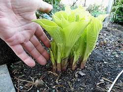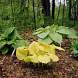 Хоста Dawn's Early Light (Донс Эрли Лайт). Листья округлые, яркие лимонно-жёлтые, выпуклые, с глубоким жилкованием, морщинистые с гофрированным краем. Постепенно становятся желтовато-зелеными. Размер листа 22 х 20 см. Цветы светло-лавандовые. Высота цветоноса 75 см. Куст симметричный. Предпочитает тенистые места, но выдерживает солнце. Скорость роста от средней до высокой. Размер Medium-Large.