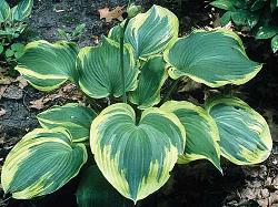 Хоста Earth Angel (Эс Энджел). Классическая хоста с большими сине-зелеными сердцевидными листьями, окаймленными широкой кремово-белой полосой. Цветы бледно-сиреневые, высота цветоноса 75-80 см.