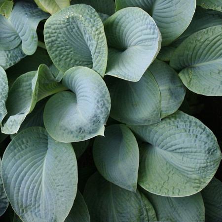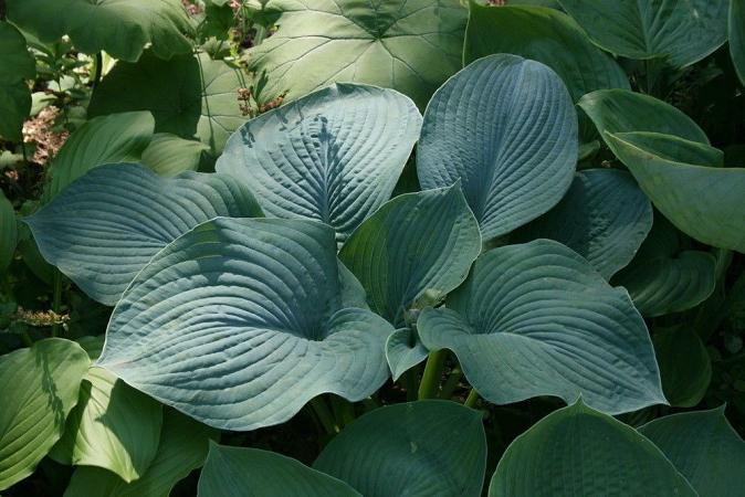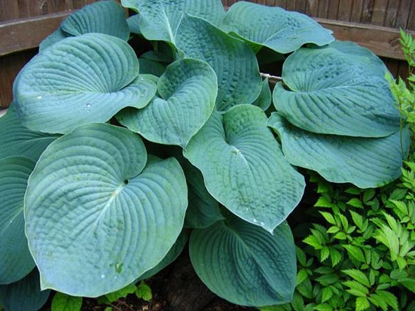 Хоста Elegans (Элеганс). Крупная хоста с плотными овальными сизо-зелеными жилистыми листьями, покрытыми восковым налетом. Цветет белыми воронковидными цветами. Растение отлично смотрится возле воды, а также в сочетании с кустарниками и цветами.