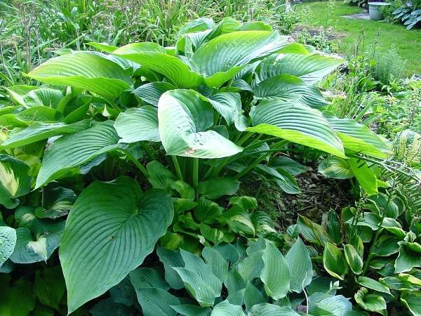 Обычно хосты высаживают с гейхерой, садовыми геранями, наперстянкой, астильбой, медуницей, аквилегией, осенней анемоной, папоротниками, астранцией и другими декоративными многолетниками.