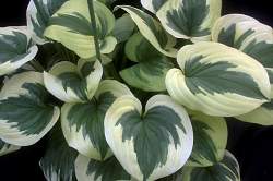 Хоста Fragrant Queen (Фрагрант Куин). Толстые серо-зеленые листья с очень широким желтым, переходящим в кремовый краем. Тетраплоидный спорт от "Fragrant King". Цветки светло-лавандовые, душистые. Размер Large. Хорошо растет в тени, полутени.