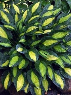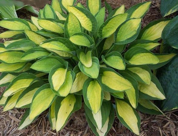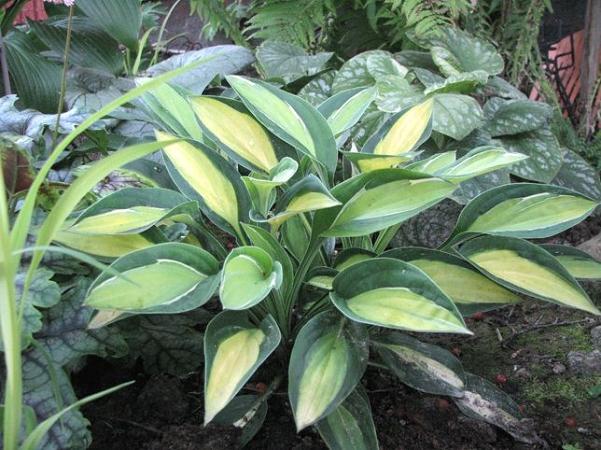 Хоста Gypsy Rose (Джипси Роуз). Порадует необычной окраской листьев, неприхотливостью и отличной зимостойкостью. По форме листья овальные, заострённые. Окрашены в сочно-зелёный цвет, а в центре — листовидный кремово-жёлтый рисунок, по краю которого проходит тонкая белая кайма, разделяющая его с внешней окантовкой листа. Наибольшей декоративности растение достигает летом, когда появляются цветоносы со светло-лиловыми цветками.