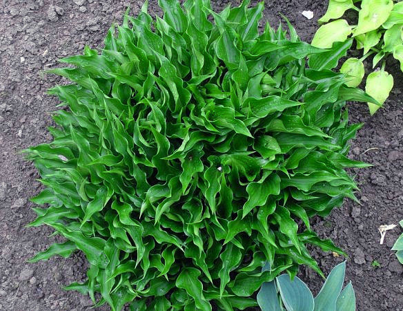 Хоста Harry van Trier (Харри Ван Триер). Миниатюрный сорт c продолговатыми плотными темно-зелеными листьями, имеющими крупную волну по всей поверхности. Цветки бледно-сиреневые, цветение сверхобильное. Место посадки: солнце или полутень. Высота 15-25 см. Растет быстро, образует красивейшие курчавые куртины.