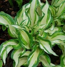 Хоста Kiwi Spearmint (Киви Сперминт). Маленькая хоста высотой 15-20 см и шириной 30 см. Спорт H. undulata. Листья копьевидные, волнистые и скрученные, белые с зелёным краем, позднее появляются зелёные прожилки и штрихи. Цветки лавандовые.