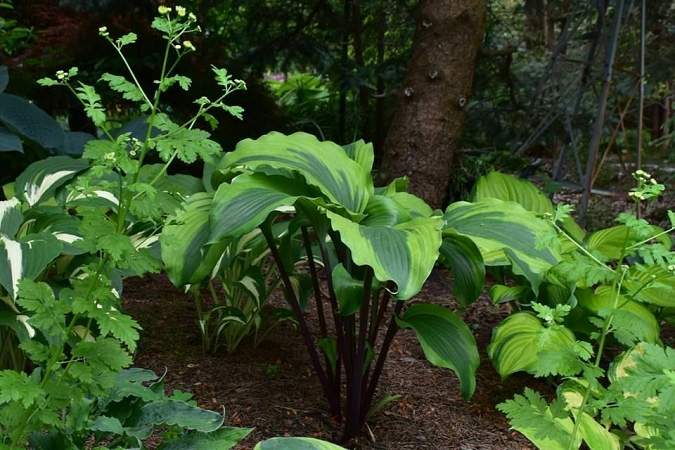 Обычно хосты высаживают с гейхерой, садовыми геранями, наперстянкой, астильбой, медуницей, аквилегией, осенней анемоной, папоротниками, астранцией и другими декоративными многолетниками.