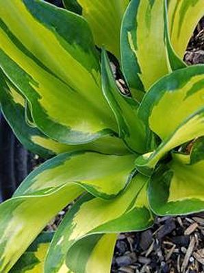 Хоста Morning Star (Морнинг Стар). Куст компактный, округлой формы. Листья среднего размера, немного рифленые, широкояйцевидные, с острыми концами. Лист толстый, кремово-желтый с зеленой неравномерной каймой. Цвет листьев в течение сезона меняется. Цветки многочисленные, лавандовые, на высоких стройных цветоносах.