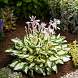 Хоста Paul Revere (Поль Ривер). Миниатюрная хоста с яркими волнистыми листьями и лавандовыми цветками. Лист контрастный — середина чисто-белая, края темно-зеленые. Высота куста 30 см.