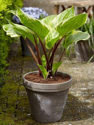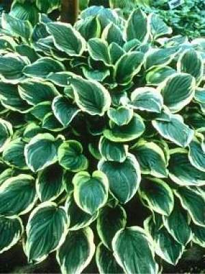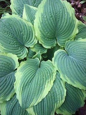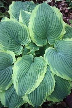 Хоста Spartacus (Спартакус). Большая хоста, разрастается в ширину до 120 см. Спорт сорта "Sea Gulf Stream". Листья размером 31х20 см, высотой 50 см, яркие, контрастные, зелёные с сильно рифлёной золотистой каймой, сердцевидные, с глубокими прожилками и слегка обратно-чашевидной формы.