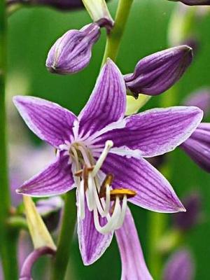 Цветки бледно-лавандовые. Цветоносы аркообразные, высотой 60-70 см.