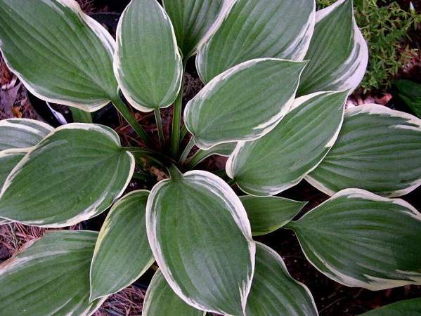 Хоста Tambourine (Тамбурин). Луковицы хосты Tambourine (Тамбурин) активно начинают расти уже ранней весной, выпуская множество листьев. В высоту куст достигает 45 сантиметров, а в ширину разрастается до 90 сантиметров. Элегантное растение с зелеными листьями, которые украшает светло-кремовая кайма, будет эффектно смотреться на любом притененном участке сада. Цветет в августе крупными цветками нежно-сиреневого оттенка.