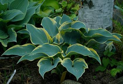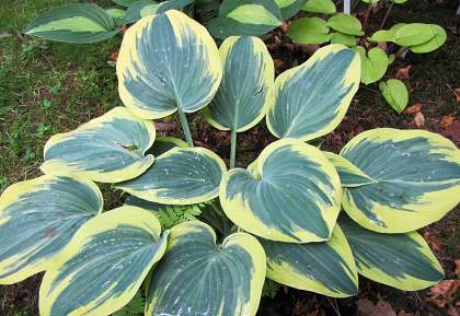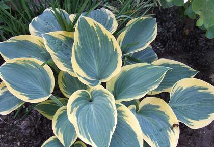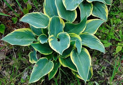 Хоста Valley's Glacier (Волиз Гласьер). Среднего размера хоста высотой до 40 см. Листья сердцевидные, зелёные с очень широкой каймой, сначала жёлтого цвета, затем кремово-белого. Цветки лавандовые. Цветение в июле-августе. Место полутенистое. Почва влажная, дренированная.