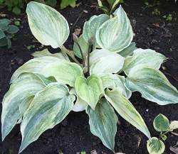 Хоста Vermont Frost (Вермонт Фрост). Листья сердцевинные, волнистые, в начале вегетации белые, позже приобретают неравномерное сине-зеленое напыление. Цветы лавандовые. Высота 30 см. Спорт от H. "Ghost Spirit".
