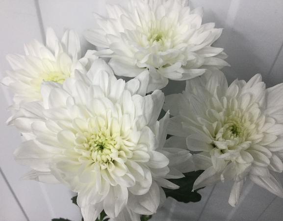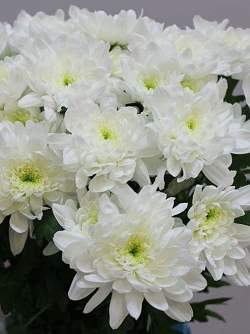 Хризантема Baltica White (Балтика Вайт). Прекрасный срезочный сорт кустовой хризантемы. Высота 70 см. Побеги сильные, прямые, на верхушках ветвятся. Цветки белые, махровые, до 8-10 см в диаметре. Можно выращивать как одноголовую, тогда размер цветков будет намного больше. Листья тройчатые, красивые, ароматные. Цветет с сентября по ноябрь.