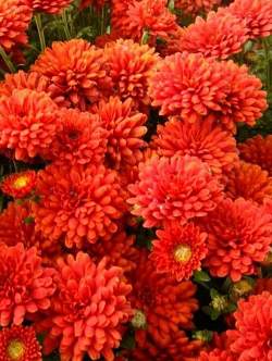 Хризантема Barbara Red (Барбара Ред). Куст шаровидный, высотой 30-40 см. Побеги крепкие, сильно ветвящиеся. Во время цветения куст полностью покрыт красно-оранжевыми махровыми цветками. Диаметр цветков 4 см.