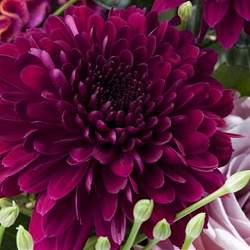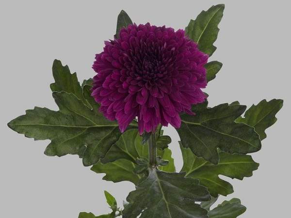 Хризантема Barca (Барка). Роскошный срезочный сорт крупноцветковой одноголовой хризантемы. Высота побегов до 70 см. Листья крупные, насыщенно-зеленые. Соцветия до 10 см в диаметре, фиолетовые, махровые. Цветение с сентября по ноябрь.