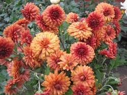 Наверное, самая известная корейская хризантема. Вообще, сейчас все гибриды на основе корейской хризантемы называют дубками из-за формы листьев. Поэтому сорт Дубок приходит на ум первым, когда вообще речь заходит о хризантемах, которые раньше называли у нас садовыми. Куст средней высоты, 50-60 см, рыхловатый, цветение обильное, длительное. Цветки помпончиками, очень симпатичные, махровые, цвет коричневато-оранжевый, переходный — от более темного кирпичного оттенка к светлому палевому.
