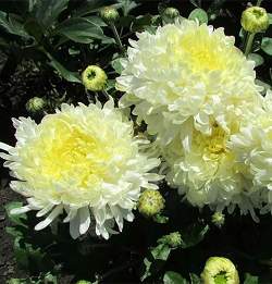 Хризантема Гуси-лебеди. Морозостойкий сорт, не требующий укрытия на зиму. Высота куста 60 см. Стебли прямые, разветвленные. Соцветия махровые, прекрасного сложения, холодного желтого цвета с эффектом свечения. Диаметр соцветий 8 см. Цветет в августе-октябре. При посадке растения важно не заглублять. Хризантема любит влажные дренируемые почвы. Лучшая погода для высадки рассады пасмурная.