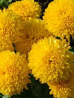 Хризантема корейская Pompon Yellow (Помпон Йеллоу). Морозостойкий сорт, не требующий укрытия на зиму. Цветки ярко-желтые, помпонные, довольно крупные (до 8 см). Цветение обильное с августа по октябрь. Высота куста 50 см.