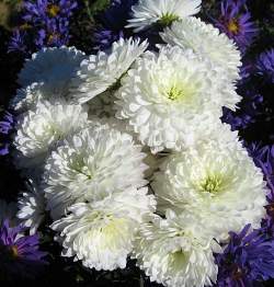 Хризантема Школьница (Первоклассница). Морозостойкий сорт, не требующий укрытия на зиму. Высота куста 30 см. Стебли прямые, разветвленные. Соцветия махровые, очень крупные, до 10 см в диаметре. Цветет в августе-октябре. При посадке растения важно не заглублять. Хризантема любит влажные дренируемые почвы. Лучшая погода для высадки рассады пасмурная.