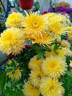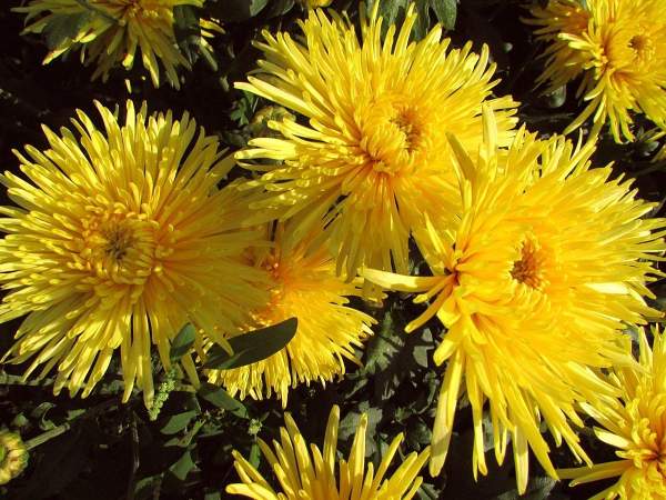 Хризантема Сонечко. Морозостойкий сорт, не требующий укрытия на зиму. Высота куста 50 см. Стебли прямые, разветвленные. Соцветия махровые, очень крупные, до 10 см в диаметре. Язычковые цветки свернуты в трубочку, поэтому хризантема похожа на игольчатую. Цветет в августе-октябре. При посадке растения важно не заглублять. Хризантема любит влажные дренируемые почвы. Лучшая погода для высадки рассады пасмурная.