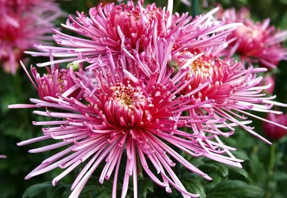 Хризантема Spider Pink (Спайдер Пинк). Данная красотка относится к хризантемам-фентези. Редкая штучка. Китайцы первые обратили на нее внимание 3000 лет назад. Из этого волшебного розового "паучка" делают лекарства, специи для кухни и парфюм. Ваш сад станет изысканным с этой гостьей.