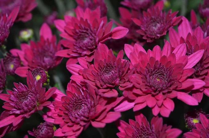 Хризантема Jaguar Purple (Ягуар Пёпл). Морозостойкий сорт, не требующий укрытия на зиму. Высота куст 45-60 см. Стебли прямые, разветвленные. Соцветия 5-6 см в диаметре, махровые, от бордового до пурпурного цвета. Цветет продолжительно с сентября по ноябрь. При посадке растения важно не заглублять. Хризантема любит влажные дренируемые почвы. Лучшая погода для высадки рассады пасмурная.