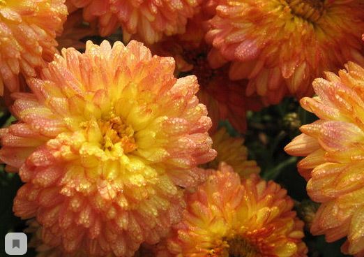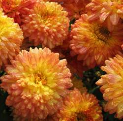 Хризантема Янтарный Бриз. Куст высокий, со множеством побегов. Соцветия густомахровые. Цветение обильное и продолжительное. Пик цветения — в сентябре. Зимует в открытом грунте. Легко размножается.
