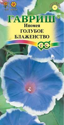 Ипомея Голубое блаженство. Вьющееся однолетнее растение для вертикального озеленения из семейства Вьюнковые, с побегами, длиной до 2,5 м. Листья крупные, сердцевидные. Цветение обильное — с конца июня до заморозков. Цветки воронковидные, крупные (7-10 см в диаметре), голубые с белой каймой. Ипомея светолюбива и теплолюбива, заморозков не переносит. Высевают в открытый грунт во второй половине мая по 2-3 семени в лунку. Семена перед посевом желательно замачивать на сутки. Всходы появляются через 6-14 дней, расстояние между растениями должно составлять 25-35 см. Используется для озеленения балконов и ваз, создания вертикальных цветущих ширм.