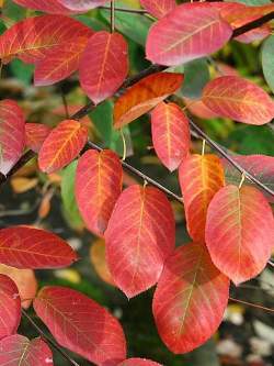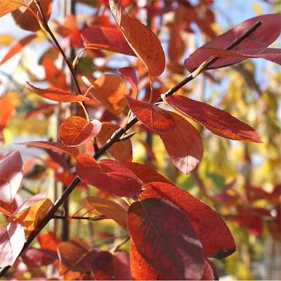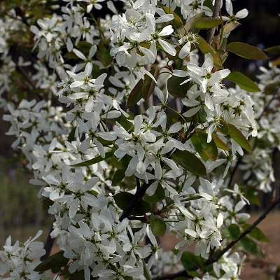 Ирга канадская Балерина. Высокий кустарник или небольшое дерево, высотой до 8 м, шириной до 6 м. Чисто белые цветки в форме звезды, крупные, диаметром 2,5 — 3 см, собранные в кистевидные соцветия длиной 7 — 10 см, появляются в мае. Красные, зрелые — тёмно-красные и чёрные, диаметром 1 — 1,25 см, сочные и сладкие съедобные ягоды появляются в начале июля.