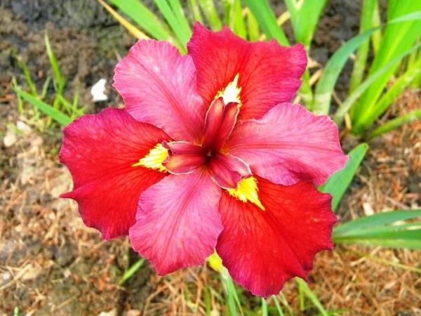 Ирис Ann Chowning (Энн Чаунинг). Яркий и красивый. Лепестки красные, внешние более насыщенной окраски с броским желтым сигналом. Высота 70-80 см.