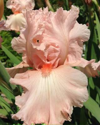 Ирис Beverly Sills (Беверли Силс). Цветок чистого светло-розового цвета, очень крупный, с широкими волнистыми лепестками.