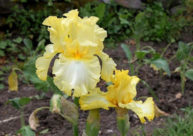 Весной отгребите землю вокруг ириса, убедитесь, что корневище твердое. Обработайте ирис и почву вокруг золой. Древесная зола для этих растений — и средство гигиены, и удобрение, ее вносят несколько раз за сезон.