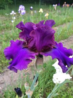 Ирис высокий бородатый Blueberry Fudge (Блуберри Фадж). Стандарты красновато-фиолетовые, светлее к каям. Фолы фуксиново-синие, краснее у плечиков. БОродка фиолетова с бронзовым кончиком. Красивая гофрировка. Срок цветения поздний. Высота 117 см.