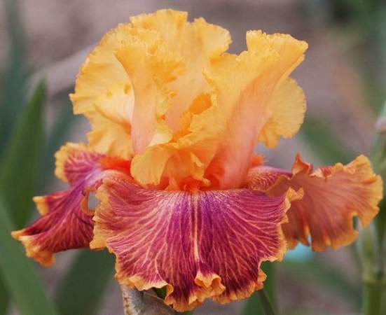 У бородатых ирисов толстое многолетнее корневище располагается горизонтально вровень с почвой, от него отходят длинные шнуровидные корни, образующие мочковатую корневую систему. Мечевидные листья, покрытые сизым восковым налетом, сложены веером. Вырастив такого метрового красавца вблизи дома или дорожки, вы подарите себе ни с чем несравнимое удовольствие наблюдать за рождением цветка, изменением его очертаний и оттенков по мере взросления.