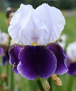 Ирис бородатый Braithwaite (Брайтвайт). Высота растения 80 см, цветок двухцветный: стандарты белые с голубоватым оттенком, фолы темно-фиолетовые с синим краем.