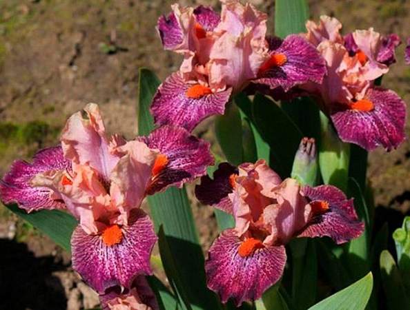 Ирис бородатый карликовый Brash and Sassy (Брэш энд Сасси). Стандарты розовые с нежным фиолетовым вливанием по центру жилки. Фолы бордовые с белым узором в области бородки. Бородка мандариновая. Дерзкий, яркий, восхитительный сорт. Срок цветения ранний. Высота 25 см.