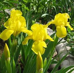 Ирис Brassie (Брасси). Цветки золотисто-жёлтые с жёлтой бородкой, яркие. Высота 20-40 см. Цветет в конце мая - начале июня. Прекрасно смотрится в бордюрах, а также в гравийных садах.