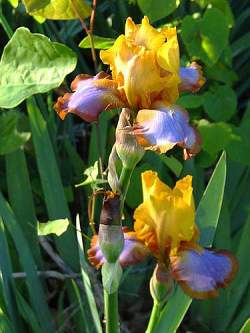 У бородатых ирисов толстое многолетнее корневище располагается горизонтально вровень с почвой, от него отходят длинные шнуровидные корни, образующие мочковатую корневую систему. Мечевидные листья, покрытые сизым восковым налетом, сложены веером. Вырастив такого метрового красавца вблизи дома или дорожки, вы подарите себе ни с чем несравнимое удовольствие наблюдать за рождением цветка, изменением его очертаний и оттенков по мере взросления.