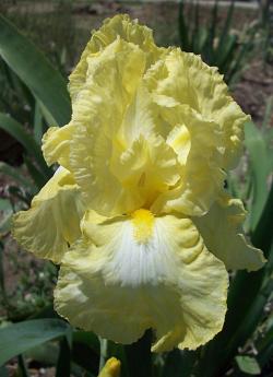 Ирис бородатый Buttered Popcorn (Баттэд Попкорн). Стандарты цвета сливочного масла, фолы с высветлением в центре, бородка желтая. Очень эффектный и легко разрастается.