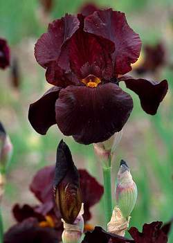 Ирис Калиенте (Caliente) быстро растёт и развивается на солнечных участках. Высота около 100 см. Стандарты и фолы темно-красные, коричневатые, бархатные. Бородка оранжевая.