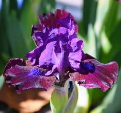 Ирис карликовый Career (Кариэ). Очень яркий и невероятно эффектный. Когда цветет куртина, зрелище незабываемое. Стандарты темно-фуксиновые, по центру фиолетовые. Фолы черно-вишневые, бархатные. У бородки вспышка. Бородка фиолетовая, коричневая и белая. Средне-ранний. Высота 30 см.