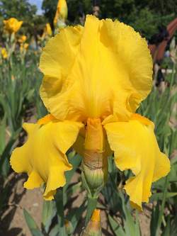 Ирис Caroline Gold (Кэролайн Голд). Восхитительный ирис! Цвет чистый, яркий, приятный. Бородка светло-оранжевая. Цветки крупные, на лепестках красивая гофрировка. Высота растения 70 см. Цветоносы разветвленные.